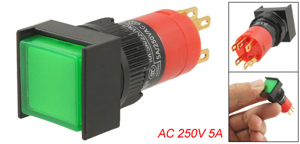 Square Green Cap Lamp 1NO 1NC AC 250V 5A Push Button Switch