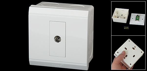 Shape Square Material Plastic, Electronic Parts Color White Installing Hole Size 11 x 6mm/0.4" x 0.24"(L*W) Installing Hole Distance 43mm/1.7" Size 8.6 x 8.6 x 4.7cm/3.4'' x 3.4'' x 1.9'' (L*W*T) Weight 110g Package Content 1 x PAL TV Socket Wall Plate