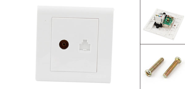 Product Name TV Socket Wall Plate Fit Plug TV Aerial, Computer Cable Color White Material Plastic & Electric Parts Size 8.6 x 8.6 x 3.4cm/ 3.4" x 3.4" x 1.3" (L*W*H) Weight 54g Package Content 1 x TV Socket Wall Plate