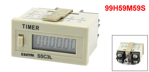 Product Name Time Counter Model SSC3JL Input Non-voltage Required Number of Digits 6 Counting Range 99H59M59S Counter Size 4.8 x 2.3 x 5.3cm/ 1.9" x 0.9" x 2" (L*W*T) Working Temperature -10~40°C Color Beige Net Weight 51g Package Content 1 x Time Counter - Reviews