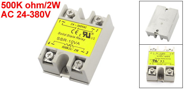 Product Name Solid State Relay Type SSR-10VA Input 500K ohm/2W Output AC 24-380V Rated Current 10VA Total Size (Approx.) 64 x 45x 23mm/ 2.5" x 1.8" x 0.91"(L*W*T) Material Plastic, Electric Part Color Gray, Silver Tone Net Weight 105g Package Content 1 x Solid State Relay