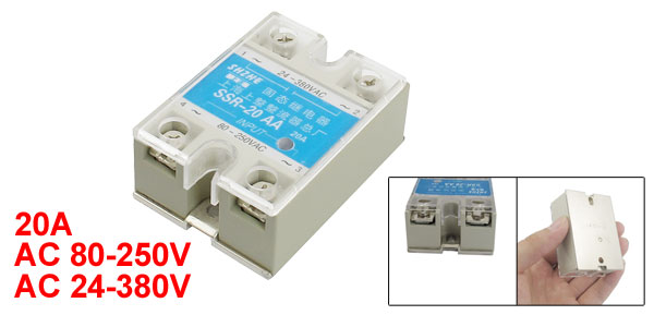Product Name Solid State Relay Type SSR-20AA Material Metal, Plastic Rated Load Current 20A Input AC 80-250V Output AC 24-380V Mounting Hole Size Small Dia:4.3mm/0.2"