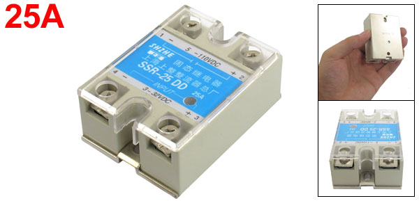 Product Name Solid State Relay Type SSR-25DD Material Metal, Plastic Rated Load Current 25A Input DC 3-32V Output DC 5-110V Mounting Hole Size Small Dia:4.3mm/0.2"