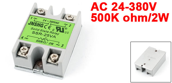 Input Control 500K ohm/2W Main Color Gray, Silver Tone Brand DMiotech Net Weight 101g Country of Manufacture CHINA Model SSR-25VA Package Content 1 x Solid State Relay Load Voltage AC 24-380V Material Plastic, Metal, Electric Part Total Size 64 x 45 x 23mm/ 2.5" x 1.8" x 0.9"(L*W*T) - Reviews