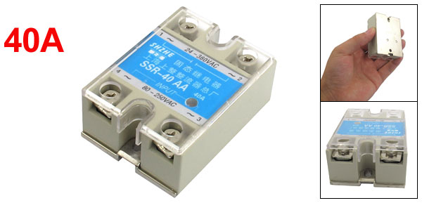 Product Name Solid State Relay Type SSR-40AA Material Metal, Plastic Rated Load Current 40A Input AC 80-250V Output AC 24-380V Mounting Hole Size Small Dia:4.3mm/0.2"