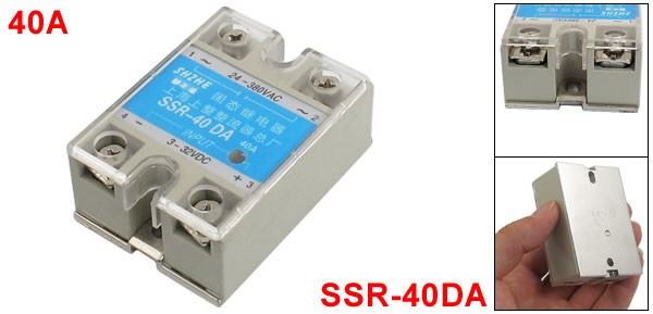 Product Name Solid State Relay Type SSR-40DA Material Metal, Plastic Rated Load Current 40A Input DC 3-32V Output AC 24-380V Mounting Hole Size Small Dia:4.3mm/0.2"