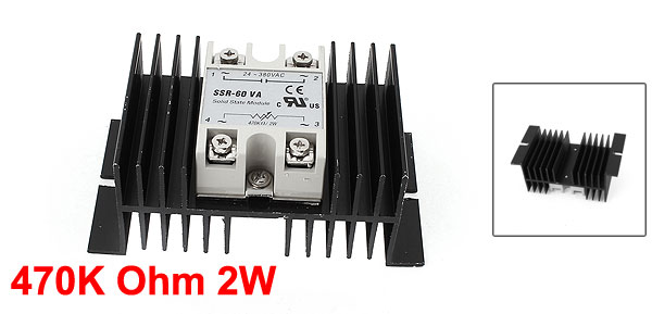 SSR-60VA 470K Ohm 2W Control Black Aluminum Heat Sink 1 Phase Solid State Relay