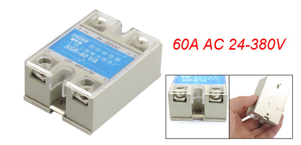 Product Name Adjustable Solid State Module Relay Type SSR-60VA Material Metal, Plastic Rated Load Current 60A Load Voltage AC 24-380V Potentiometer Input Resistance 470-560KOhm(Potentiometer is not included)