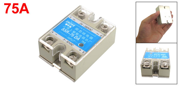 Product Name Solid State Relay Type SSR-75DA Material Metal, Plastic Rated Load Current 75A Input DC 3-32V Output AC 24-380V Mounting Hole Size Small Dia:4.3mm/0.2"