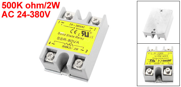 Product Name Solid State Relay Type SSR-80VA Input 500K ohm/2W Output AC 24-380V Rated Current 80VA Total Size (Approx.) 64 x 45x 23mm/ 2.5" x 1.8" x 0.91"(L*W*T) Material Plastic, Electric Part Color Gray, Silver Tone Net Weight 105g Package Content 1 x Solid State Relay
