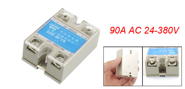 DetailsSSR-90VA 90A AC 24-380V Output Covered Adjustable Solid State Module Relay  Product Name Adjustable Solid State Module Relay Type SSR-90VA Material Metal, Plastic Rated Load Current 90A Load Voltage AC 24-380V Potentiometer Input Resistance 470-560KOhm(Potentiometer is not included) Input Power 2W Mounting Hole Size Small Dia:4.5mm/0.2" Big Size:6 x 4.3mm/0.24" x 0.2"(L*W) Total Size (Approx.) 5.8 x 4.4 x 3cm / 2.3" x 1.7" x 1.2" (L * W * H ) Color Black, Silver Tone Net Weight 126g Package Content 1 x Adjustable Solid State Module Relay
