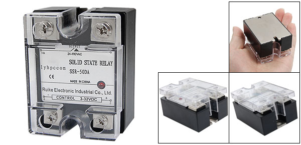 Product Name Solid State Relay Material Metal, Plastic, Electric Parts Type SSR50DA Working Current 50A Input DC 3-32V Output AC 24-480V Size (Approx.) 5.7 x 4.5 x 3.2cm/ 2.2" x 1.8" x 1.2" (L*W*T) Main Color Black, Clear Weight 93g Package Content 1 x Solid State Relay - Reviews