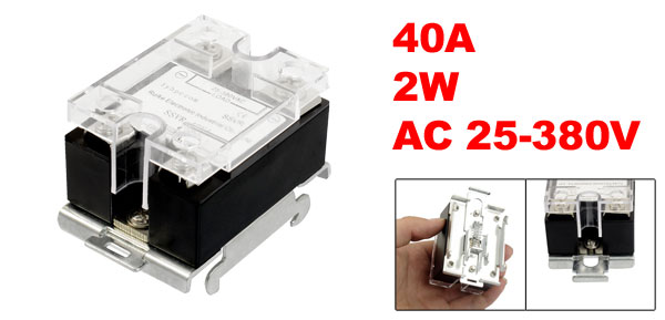 Product Name DIN Rail Mount Adjustable Solid State Relay Type SSVR-40VA Material Metal, Plastic Rated Load Current 40A Power 2W Load Voltage AC 25-380V Potentiometer Output Resistance 470-560KOhm(Potentiometer is not included)