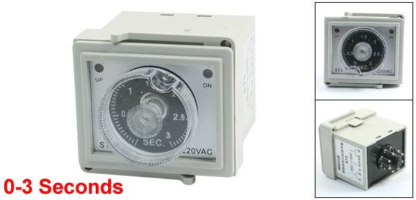 Product Name Foot Sealer Heating Time Regulator Model Number ST3 Contact Resistive Load AC 220V Input Voltage 220VAC Output Voltage 220VAC Number of Terminals 8 Pins Time Range 0-3 Seconds Indicator Operation On-Up Two LED Indicator Light External Material Plastic , Metal Mounted Size 5 x 4.5 x 5.5cm/2" x 1.8" x 2.2"(L*W*H) Total Size 60 x 5.5 x 85mm / 22.4" x 2.2" x 3.3"(L*W*H) Net Weight 100g Package Content 1 x Foot Sealer Heating Time Regulator