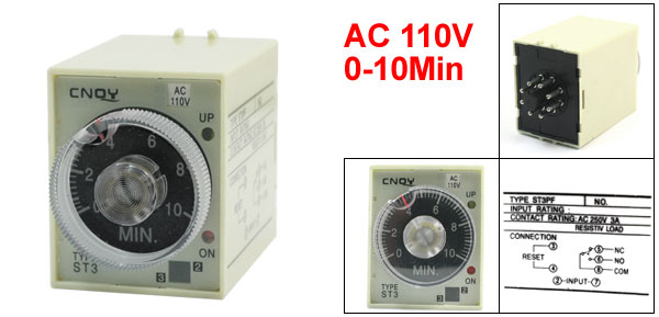 ST3 Model AC 110V 1NO 1NC 0-10Min 10Minute Delay Power on Timer Time Relay