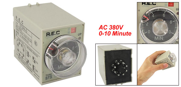 Product Name Time Relay Model ST3PA-D Working Voltage AC 380V Contact Capacity AC 220V 3A Resistive Load Time Range 0-10 Minute Total Size (Approx.) 8.2 x 5 x 3.9cm/3.2'' x 2'' x 1.5'' (L*W*H) Color As Picture Shown Weight 82g Package Content 1 x Time Relay - Reviews
