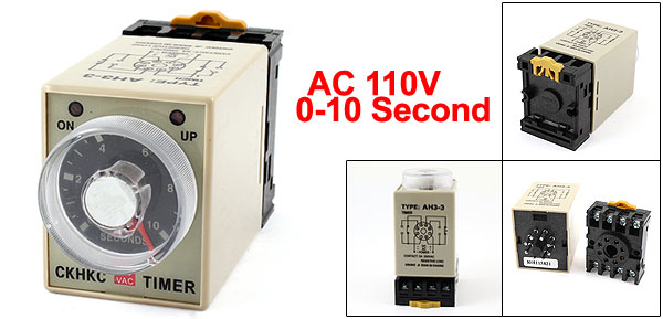 Product Name Timer Delay Relay Model Number JSZ3F(ST3PF) Pin Number 8 Pin Rating AC 110V Time Range 0-10 Second Delay Type Off-delay Operation Contact Type AC125V 1A DC 24V,2A Resistive Load Contact Type DPDT Indicator Operation One Power Indicator Lamps Overall Size(Approx) 8.2 x 5.2 x 4cm/3.2" x 2" x 1.6"(L*W*H) Terminal Block Size 7.3 x 4.4 x 2cm/2.9" x 1.7" x 0.8"(L*W*T) Terminal Block Mount Dia 6 x 5mm/0.24" x 0.2"(L*W) External Material Plastic, Metal, Electric Part Net Weight 191g Package Content 1 x Timer Delay Relay