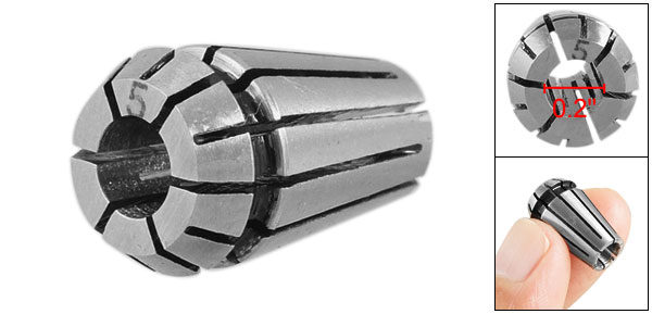 Product Name Spring Collet Model No. ER11-5 Clamping Range 5.0-4.5mm/ 0.2"-0.18" Clamping Diameter 5mm/ 0.2" Overall Size 11.5 x 18mm/0.45" x 0.7"(Dia*Length) Material Stainless Steel Color Silver Tone Net Weight 6g Package Content 1 x Spring Collet - Reviews