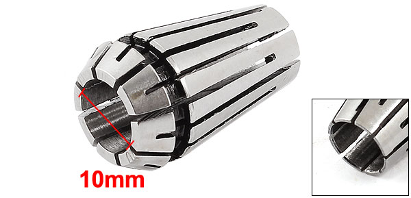 Product Name Spring Collet Clamping Diameter 10mm / 0.74" Overall Size 17 x 28mm/ 0.7" x1.1" (Max.D*L) Material Stainless Steel Color Silver Tone Net Weight 16g Package Content 1 x Spring Collet - Reviews