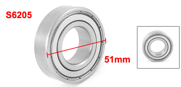 Product Name Deep Groove Ball Bearing Type S6205 Materal Stainless Steel Size 51 x 25 x 15mm /2" x 1" x 0.59"(OD*ID*T) Color Silver Tone Weight 121g Package Content 1 x Groove Ball Wheel Bearing - Reviews