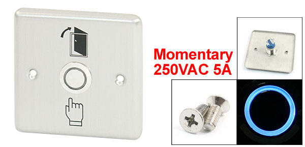 Product Name Push Button Switch Model ABK-804 Use for Electric Door Working Voltage 250VAC 5A Indicator Light Volt 12V Light Color Blue Action Type 1NO 1NC Contact Type Momentary Plate Size 8.8 x 8.8cm/ 3.4" x 3.4"(L*W) Mounted Hole Dia. 4mm/ 0.16" Material Stainless Steel Color Silver Tone Weight 95g Standard Structure 1 x Electric Door Push Button Switch