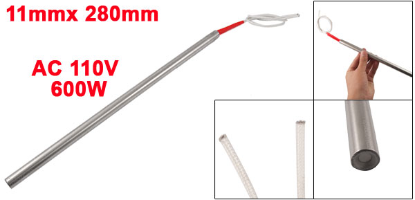 Product Name Cartridge Heater Material Stainless Steel, PVC, Nylon Rated Voltage AC 110V Power 600W Heater Size (Approx.) 11 x 280mm / 0.43" x 11" (D * L) Wire Length (Approx.) 27cm/ 10.6" Color Red, Silver Tone Weight 114g Package Content 1 x Cartridge Heater - Reviews