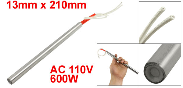 Product Name Cartridge Heater Material Stainless Steel, PVC, Nylon Rated Voltage AC 110V Power 600W Heater Size (Approx.) 13 x 210mm / 0.51" x 8.3" (D*L) Wire Length (Approx.) 29cm / 11.4" Color Silver Tone, Red, White Weight 113g Package Content 1 x Cartridge Heater - Reviews