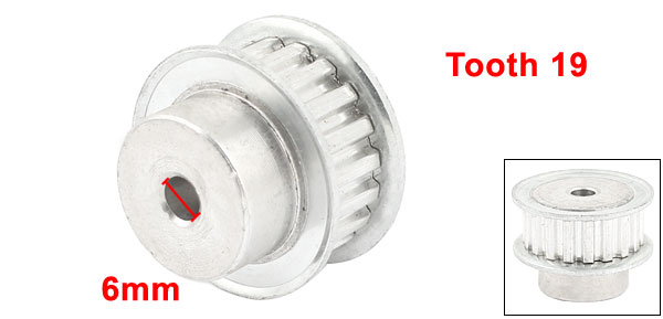 Product Name Timing Pulley Type XL Tooth Number 19 Pitch 6mm / 0.24" Bore Diameter 6mm / 0.24" Fit Belt Width 11 mm / 0.43" Overall Size 35 x 25 mm / 1.4" x 1" (D*H) Material Stainless Steel Color Silver Tone Weight 48g Package Content 1 x Timing Pulley - Reviews