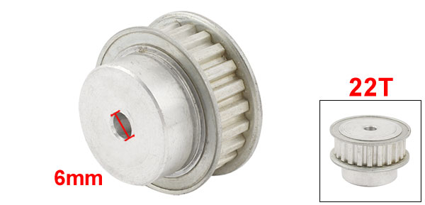 Product Name Timing Pulley Type XL Tooth Number 22 Pitch 6mm / 0.24" Bore Diameter 6mm / 0.24" Fit Belt Width 11 mm / 0.43" Overall Size 39 x 25 mm /1.5" x 1" (D*H) Material Stainless Steel Color Silver Tone Weight 62g Package Content 1 x Timing Pulley - Reviews