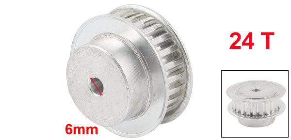 Product Name Timing Pulley Type XL Tooth Number 24 Pitch 8mm / 0.31" Bore Diameter 6mm / 0.24" Fit Belt Width 11 mm / 0.43" Overall Size 45 x 25 mm / 1.8" x 1" (D*H) Material Stainless Steel Color Silver Tone Weight 77g Package Content 1 x Timing Pulley - Reviews