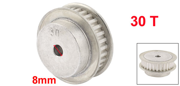 Product Name Timing Pulley Type XL Tooth Number 30 Pitch 8mm / 0.31" Bore Diameter 8mm / 0.31" Fit Belt Width 11 mm / 0.43" Overall Size 54 x 25 mm / 2.1" x 1" (D*H) Material Stainless Steel Color Silver Tone Weight 123g Package Content 1 x Timing Pulley - Reviews