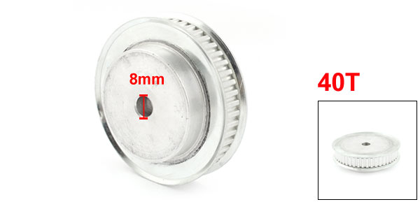 Product Name Timing Pulley Type XL Tooth Number 40 Pitch 6mm / 0.24" Bore Diameter 8mm / 0.31" Fit Belt Width 11 mm / 0.43" Overall Size 70 x 25 mm / 2.8" x 1" (D*H) Material Stainless Steel Color Silver Tone Weight 194g Package Content 1 x Timing Pulley - Reviews