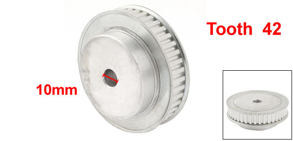 Product Name Timing Pulley Type XL Tooth Number 42 Pitch 6mm / 0.24" Bore Diameter 10mm / 0.4" Fit Belt Width 11 mm / 0.43" Overall Size 70 x 25 mm / 2.8" x 1" (D*H) Material Stainless Steel Color Silver Tone Weight 207g Package Content 1 x Timing Pulley - Reviews