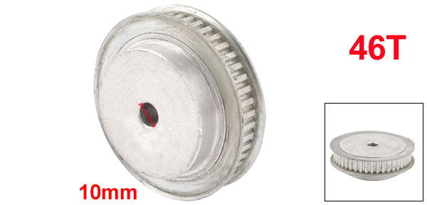 Product Name Timing Pulley Type XL Tooth Number 46 Pitch 10mm / 0.39" Bore Diameter 10mm / 0.39" Fit Belt Width 11 mm / 0.43" Overall Size 80 x 25 mm / 3.1" x 1" (D*H) Material Stainless Steel Color Silver Tone Weight 255g Package Content 1 x Timing Pulley - Reviews