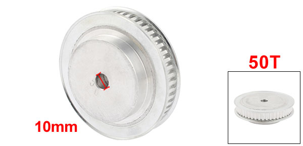Product Name Timing Pulley Type XL Tooth Number 50 Pitch 10mm / 0.4" Bore Diameter 10mm / 0.4" Fit Belt Width 11 mm / 0.43" Overall Size 85 x 25 mm / 3.3" x 1" (D*H) Material Stainless Steel Color Silver Tone Weight 295g Package Content 1 x Timing Pulley - Reviews