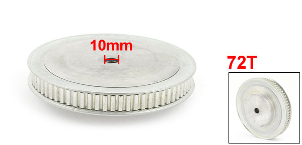 Product Name Timing Pulley Type XL Tooth Number 72 Pitch 10mm / 0.4" Bore Diameter 10mm / 0.4" Fit Belt Width 11 mm / 0.43" Overall Size 120 x 25 mm / 4.7" x 1" (D*H) Material Stainless Steel Color Silver Tone Weight 570g Package Content 1 x Timing Pulley - Reviews