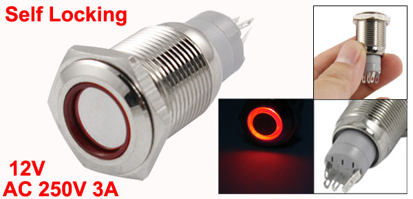 Main Color Silver Tone Brand Assisi Terminal Number 5 Country of Manufacture CHINA Material Stainless Steel Lamp Type Angel Eye LED Light Contact Type Com+NO+NC Total Size 37 x 19mm/1.45" x 0.75" (L*Max.W) Product Name Push Button Switch Net Weight 15g Package Content 1 x Push Button Switch Pole and Throw SPDT Mounting Size 16mm Light Voltage DC12V Mounting Type Nut Mount LED Lamp Color Red Switch Rating AC 250V , 3A Switch Housing Material Stainless Steel Oeperation Type Latching(Self Locking) UPC 610256309392 - Reviews
