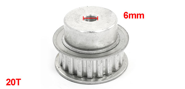 Product Name Timing Pulley Type XL20 Number of Tooth 20T Pitch 5.08mm/1/5'' Bore Diameter 6mm/0.24" Top Diameter 25mm/1" Overall Size 36 x 25mm/1.4'' x1''(D*H) Fit Belt Width 11mm/0.43" Materials Alumnum Color Silver Tone Weight 48g Package Content 1 x Timing Pulley - Reviews
