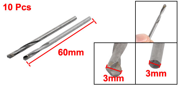 Straight 2 Flutes Carbide Tipped Drills 3mm x 3mm x 20mm x 60mm 10 Pcs