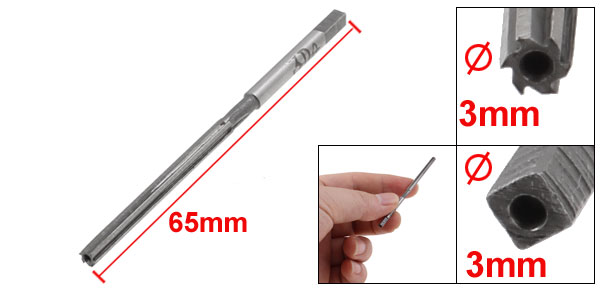 Product Name Machine Reamer Material HSS Flute Number 6 Cutting Diameter 3mm/ 3/25" Cutting Depth 33mm/ 1.3" Shank Diameter 3mm/ 3/25" Total Length 65mm/ 2.6" Color Silver Tone Weight 4g Package Content 1 x Machine Reamer - Reviews