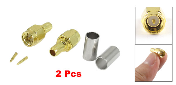 Straight SMA Male Plug Center Crimp RF Connector Adapter 2 Pcs