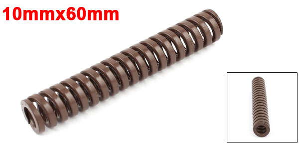 Product Name Die Spring Load Type Super Heavy Load Color Brown Hole Diameter 10mm/0.39" Rod Diameter 5mm/0.20" Free Length 60mm/2.4" Material Metal Weight 12g Package Content 1 x Die Spring - Reviews