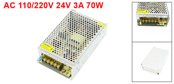Product Name Switching Power Supply Input AC 110/220V 50/60Hz Output DC 24V, 3A Power 70W Overall Size 16 x 10 x 4.5cm / 6.3" x 41" x 1.8" (L*W*T) Case Material Metal, Aluminum Case Color Silver Tone Net Weight 356g Package Content 1 x Switching Power Supply - Reviews