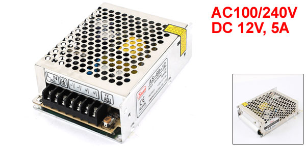 Product Name Power Supply Model AS-60-12 Input AC100/240V Output DC 12V, 5A Main Material Metal Size 11 x 7.7 x 3.7cm/4.3" x 3" x 1.4" (L*W*H) Color Silver Tone Weight 285g Package Content 1 x Power Supply - Reviews