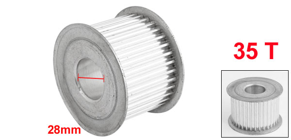 Product Name Timing Pulley Tooth Quatity 35 Pitch 4mm/ 0.16" Bore Diameter 28mm/ 1.1" Teeth Width 2.7mm / 0.11" Fit Belt Width 36mm / 0.44" Overall Size 38 x 14mm / 1.5" x 0.55"(D*H)