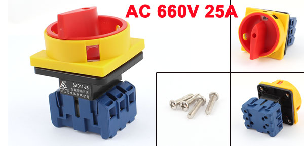 Main Color Yellow,Blue,Red Brand DMiotech Country of Manufacture CHINA Model SZD11-25A Material Plastic,Electronics Ith 25A Total Size 98 x 65 x 65mm/4" x 2.6" x 2.6"(L*W*H) Positions Quantity 2 Ui 660V Control Type On - Off Ue 440V 240V Screw Hole Diameter 3.5mm/1.4" Product Name Changeover Cam Switch Net Weight 155g Package Content 1 x Changeover Cam Switch Terminals Quantity 12 - Reviews