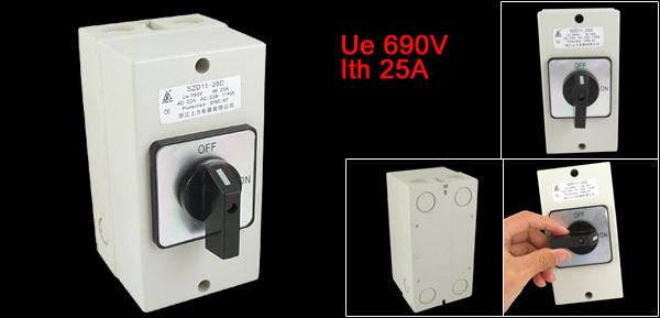 Product Name Changeover Switch Model No. SZD11-25D Ue 690V Ith 25A Power 11KW Overall Size(Approx) 15.9 x 8.4 x 8.6cm / 6.3" x 3.3" x 3.4"(L*W*H) External Material Plastic Color See the Picture Net Weight 389g Package Content 1 x Changeover Switch - Reviews