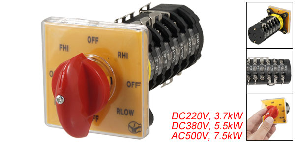Product Name Universal Switch Model No. T-16EXF64D-6 Voltage & Power DC220V, 3.7kW DC380V, 5.5kW AC500V, 7.5kW AC1 20A Ith 25A Installing Holes Dia 3.8mm / 0.150" Installing Size 48 x 48mm / 1.90" x 1.90"(L*W) Overall Size 64 x 64 x 140mm / 2.5" x 2.5" x 5.5"(L*W*H) External Material Plastic Color Red, Black & Yellow Net Weight 261g Package Content 1 x Universal Switch - Reviews