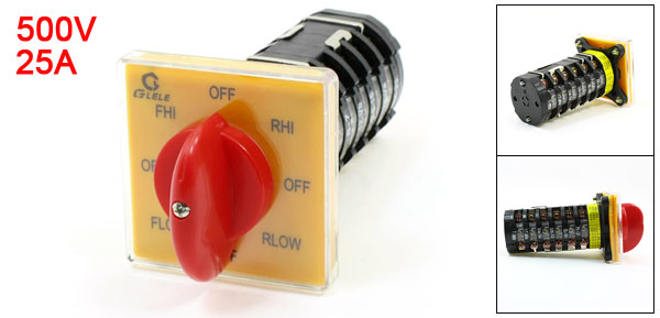 V KW HP690V 220 3.7 5 380 5.5 7.5 500 7.5 10 Positions 8(Off/Flow/Off/fhi/Off/rhi/Off/Rlow) Total Size 64 x 64 x 135mm / 2.5" x 2.5" x 5.3"(L*W*H) Weight 295g Package Content 1 x Changeover Switch