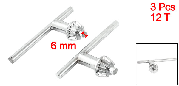 T Shape 12 Teeth Gear Design 6mm Dia Pilot Drill Press Chuck Key 3 Pcs